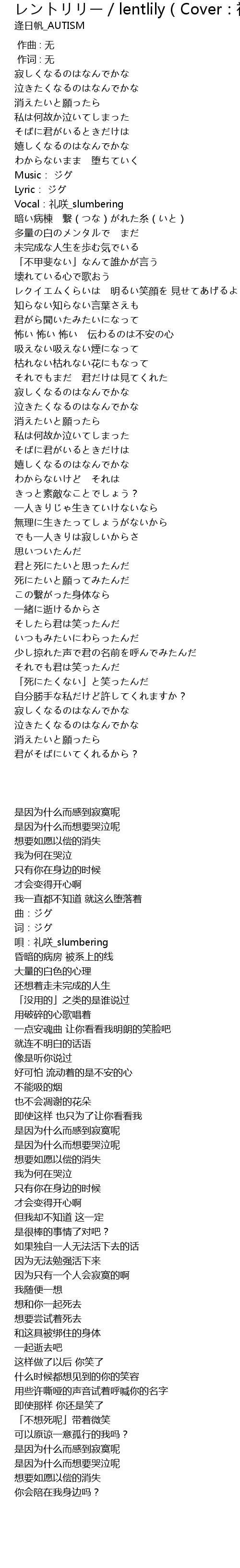 | [00:29.32] | Vocal:礼咲_slumbering |