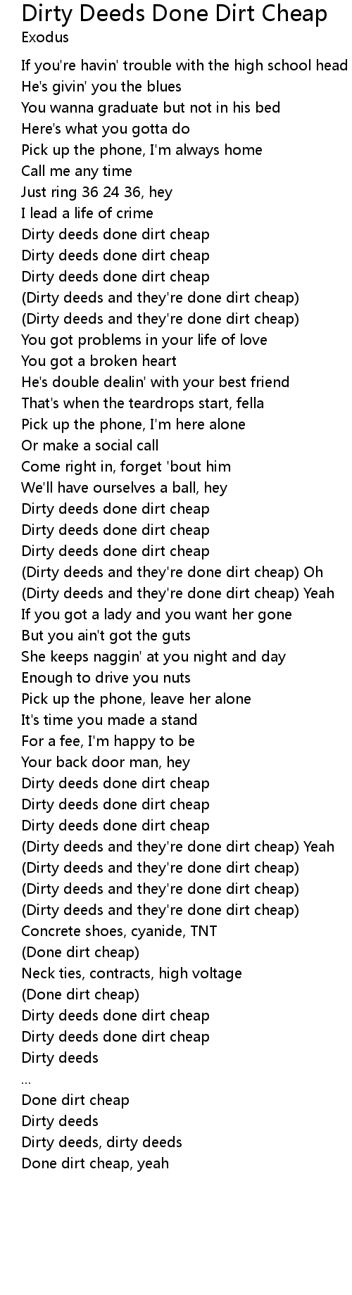 (Dirty deeds and they're done dirt cheap) Yeah |