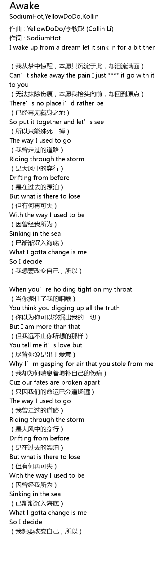 | (我从梦中惊醒,本愿其沉淀于此,却泪流满面) | |