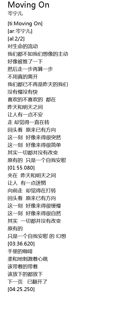 | [02:25.790] | 夹在 昨天和明天之间 |