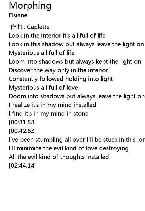 | [00:12.45] | Look in this shadow but always leave the light on |