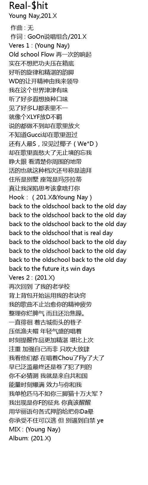| [00:09.463] | Old school Flow zai yi ci de xiang qi |
