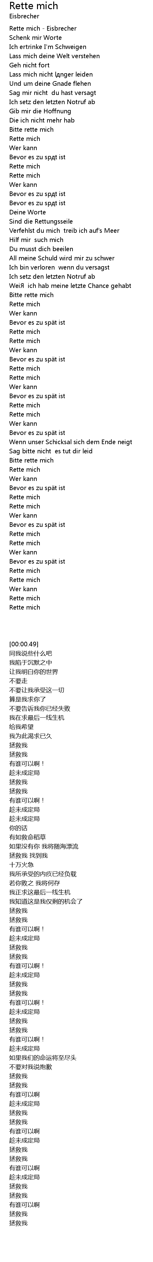 | [00:53.82] | Ich setz den letzten Notruf ab |