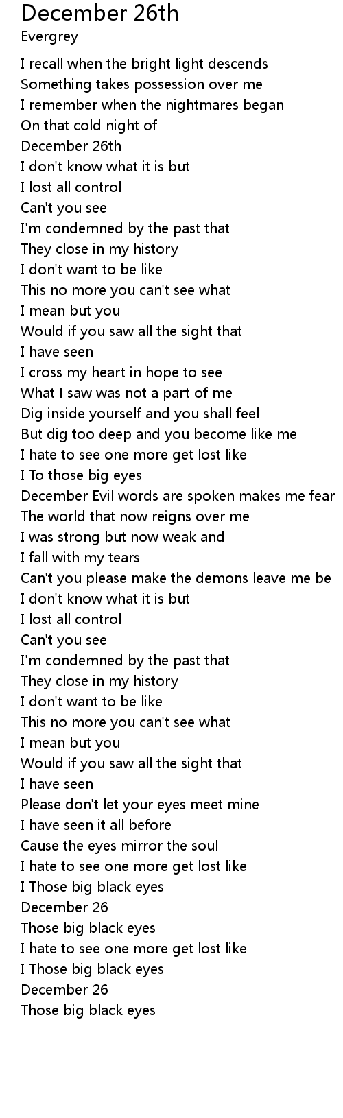 December Evil words are spoken makes me fear |