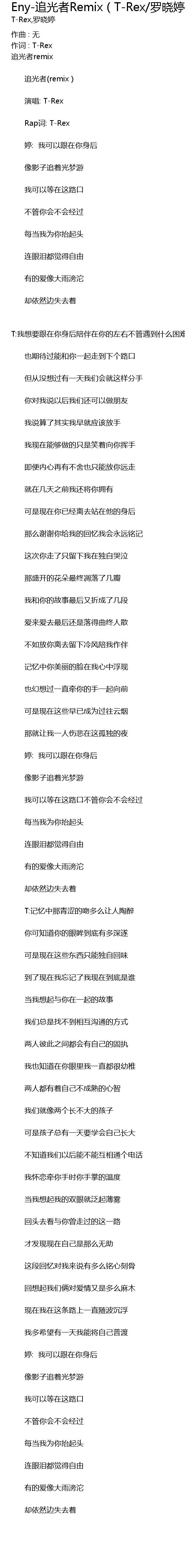 | 作词 : T-Rex | |