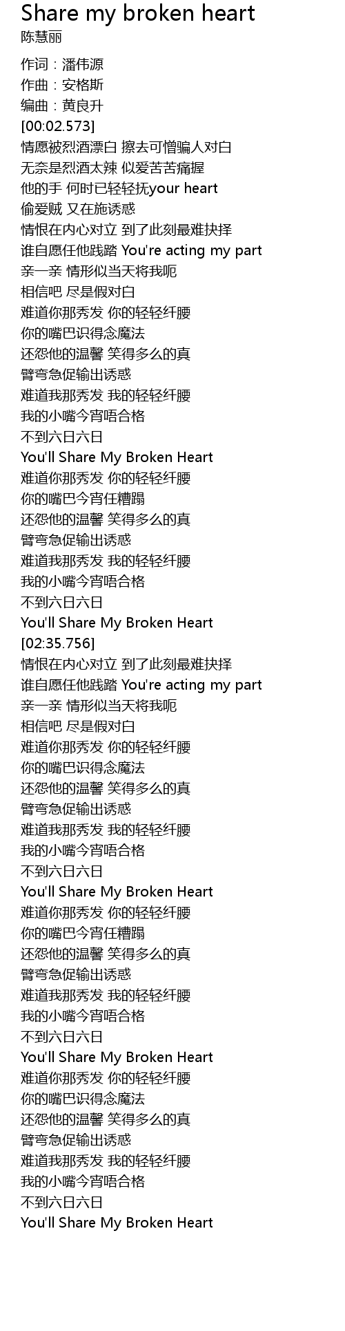 | [02:32.333] | You'll Share My Broken Heart |