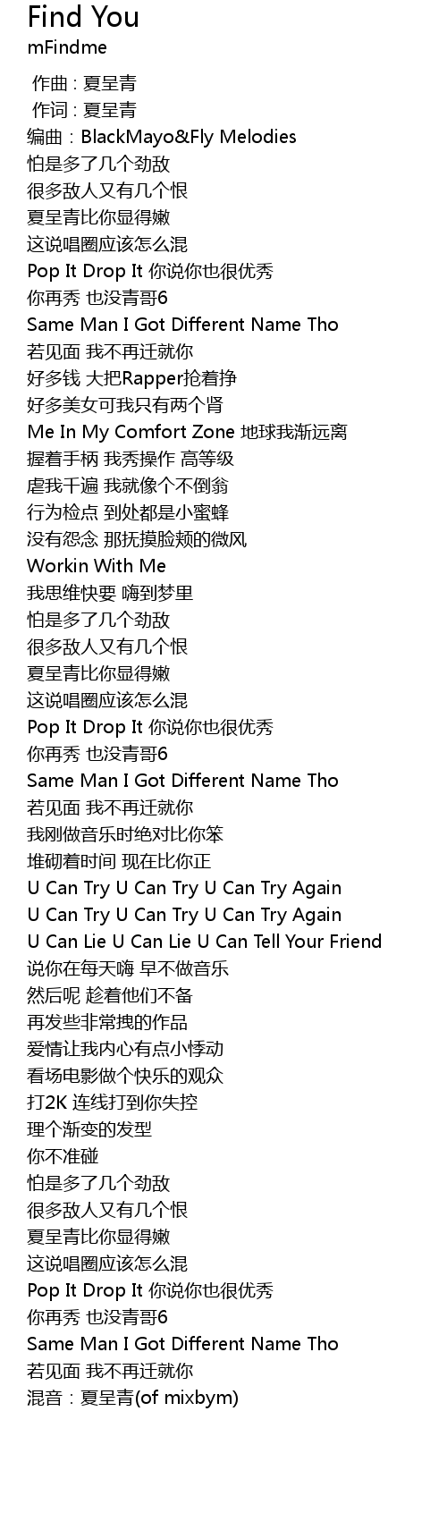 | [00:21.456] | 编曲:BlackMayo&Fly Melodies |