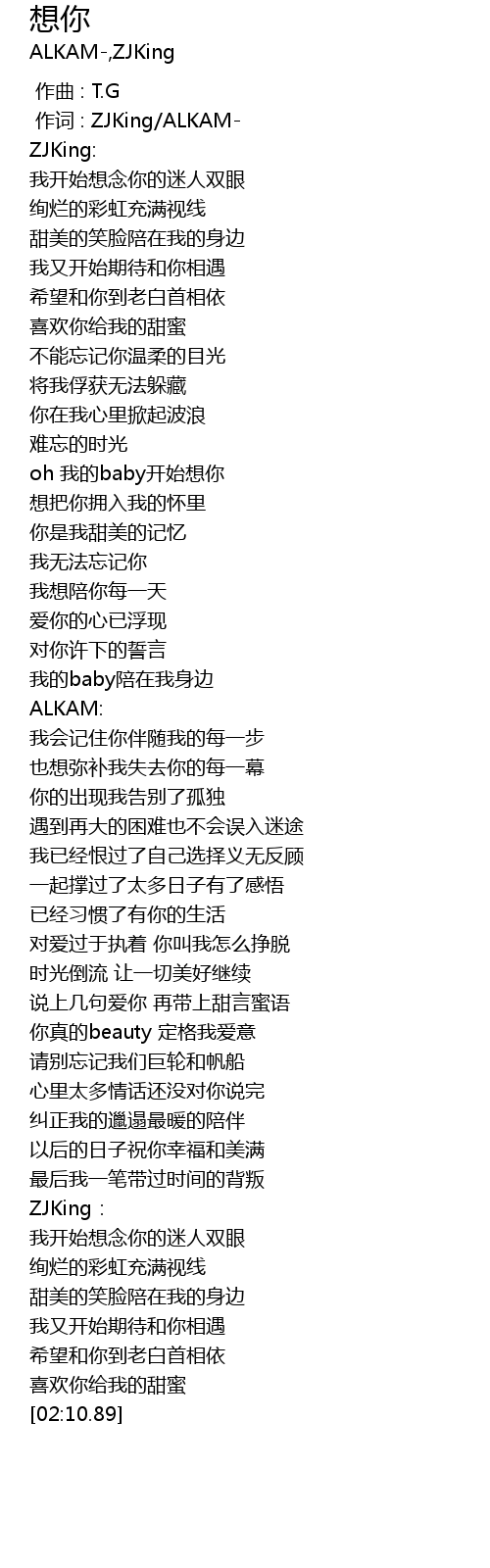 | [00:01.000] | 作词 : ZJKing/ALKAM- |