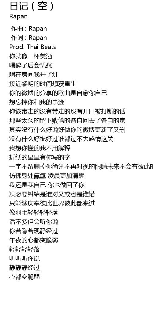 | [00:53.932] | 其实没有什么好说好做你的微博更新了又删 |