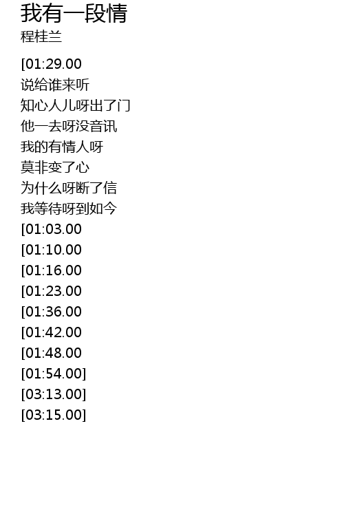 [02:45.00][01:29.00][00:14.00] wǒ yǒu yī duàn qíng ya