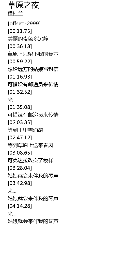 | [00:43.61] | cǎo yuán shàng zhǐ liú xià wǒ de qín shēng |