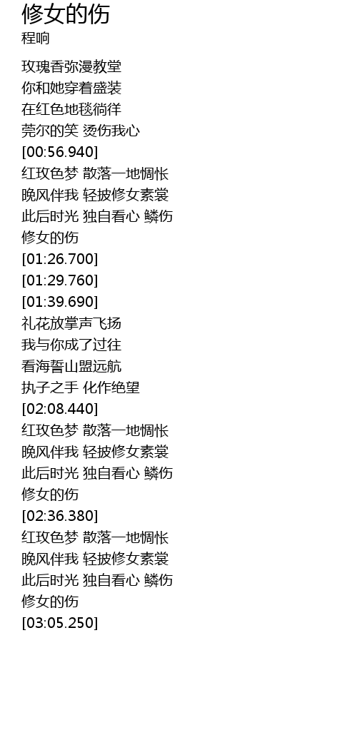 | [02:44.250] | 晚风伴我 轻披修女素裳 |