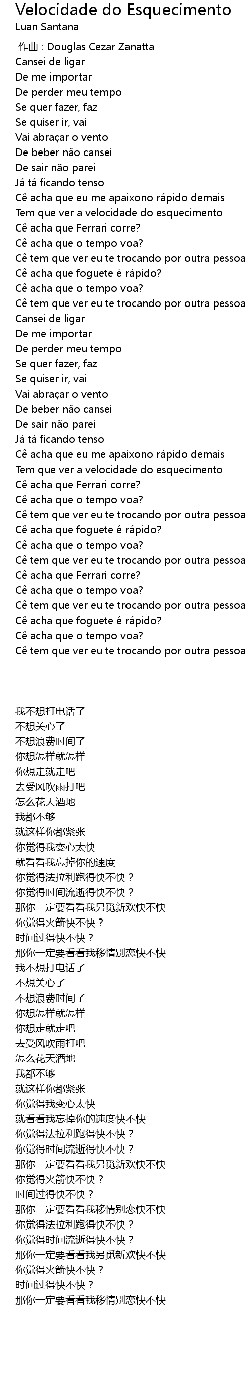 | [01:32.35] | Tem que ver a velocidade do esquecimento |