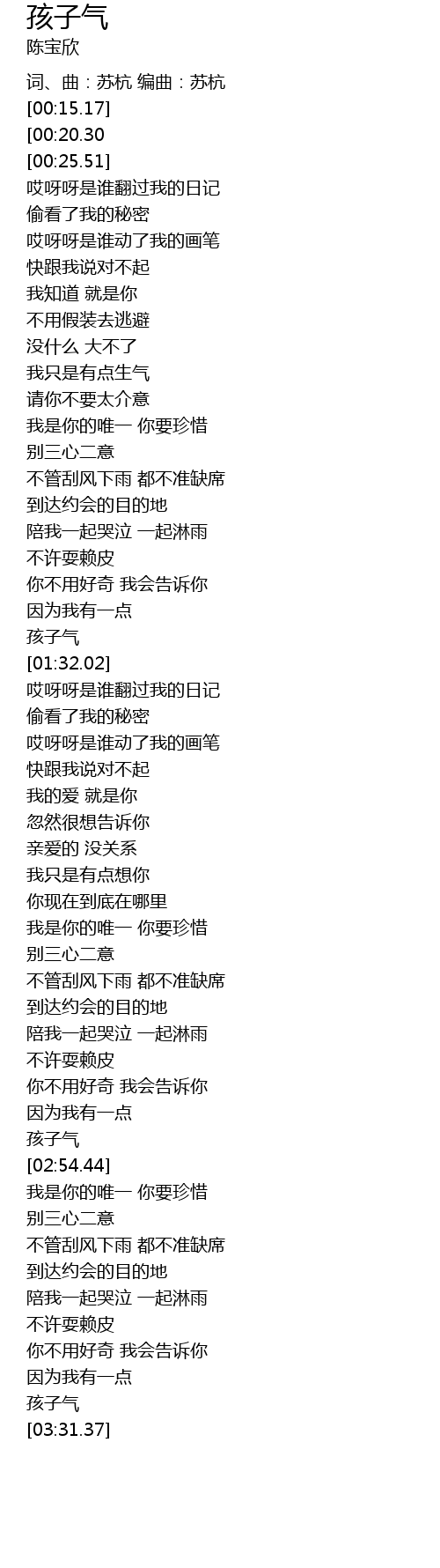 | [03:29.34] | 孩子气 |