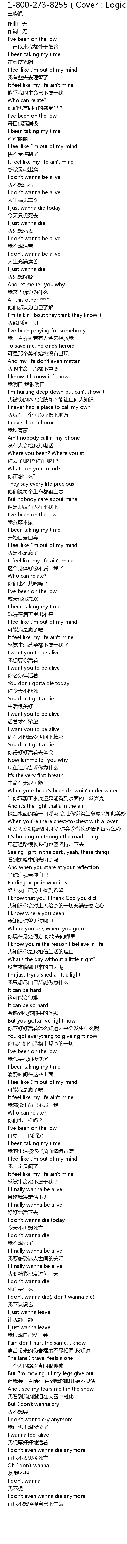 | Song | 1-800-273-8255(Cover:Logic) |