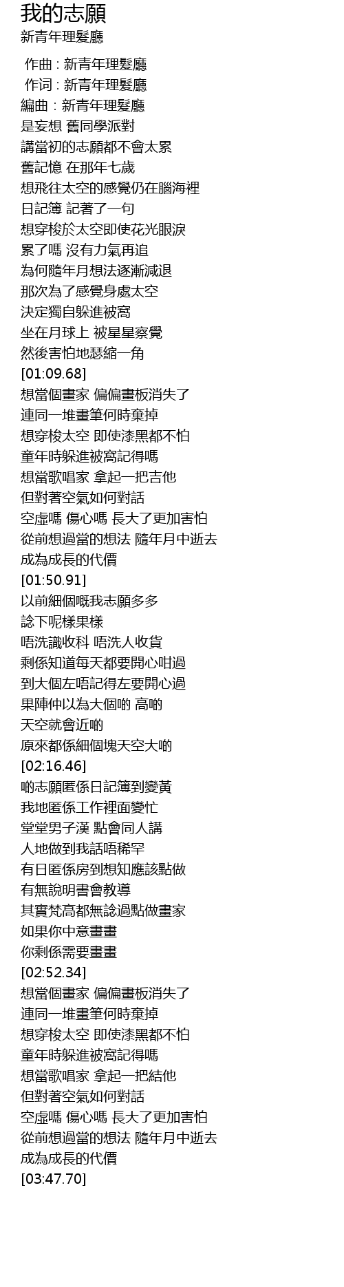 | [00:01.000] | 作词 : 新青年理髮廳 |