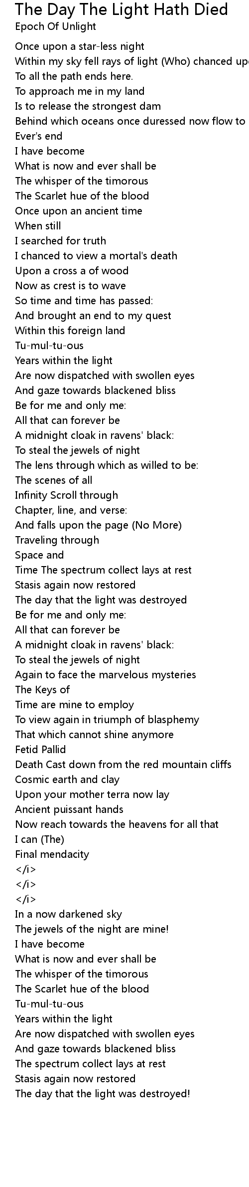 Within my sky fell rays of light (Who) chanced upon a path unknown |