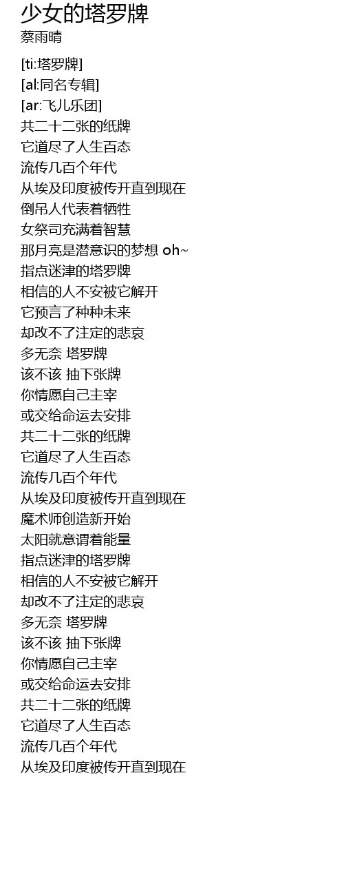 | [ti:塔罗牌] | |
