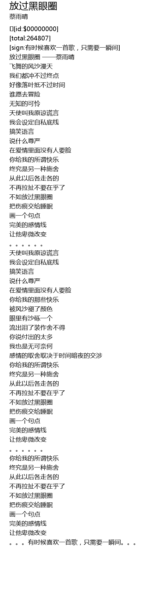 | [00:11.72] | 放过黑眼圈 ——蔡雨晴 |