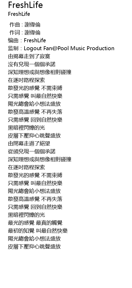 | [00:04.29] | 编曲:FreshLife |