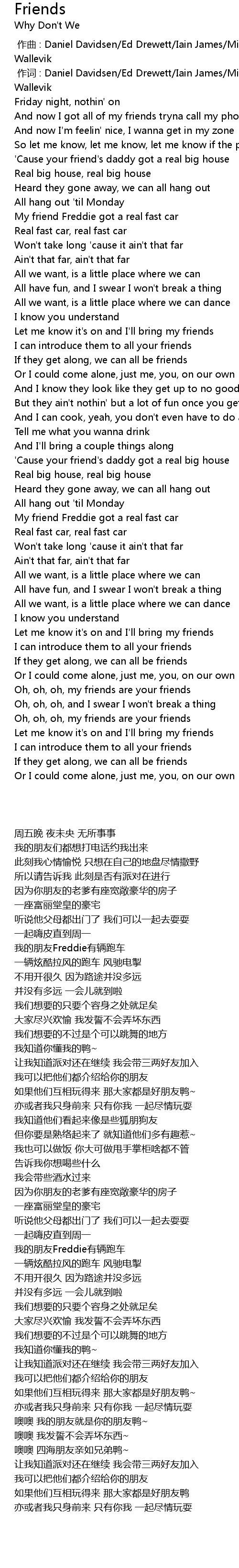 | [02:58.250] | Oh, oh, oh, my friends are your friends |