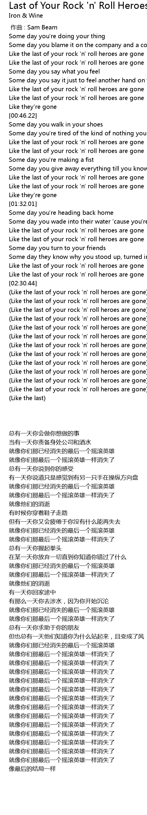 | [00:41.57] | Like the last of your rock 'n' roll heroes are gone |