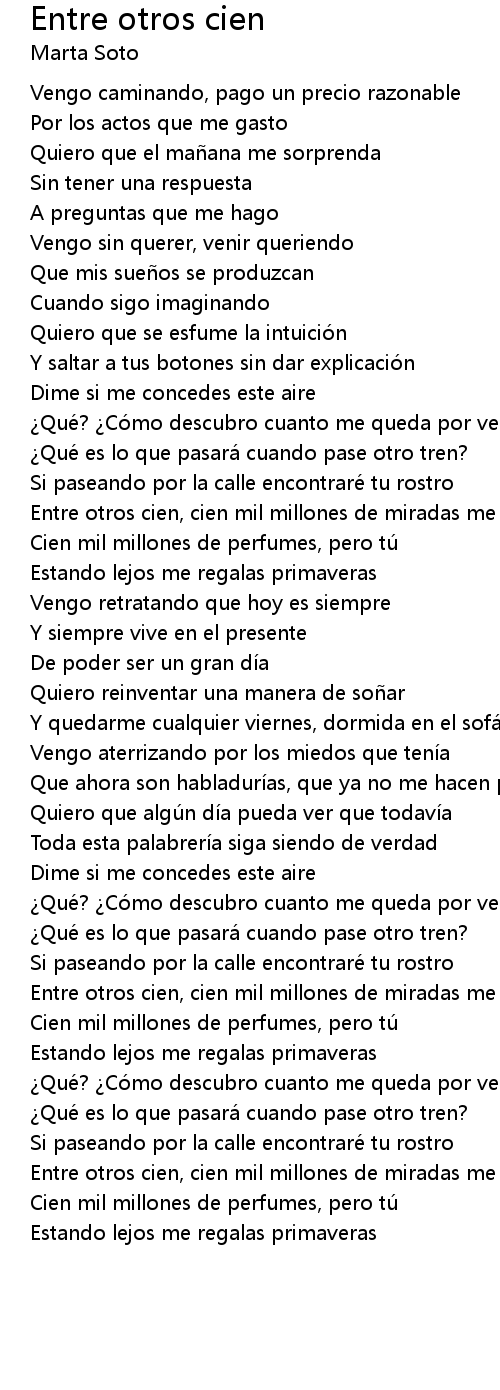 | [02:42.37] | Entre otros cien, cien mil millones de miradas me secuestrará n |