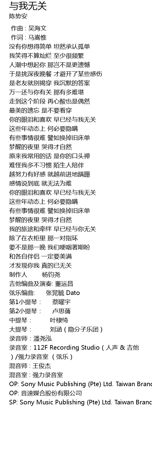 | [04:28.410] | OP: Sony Music Publishing Pte Ltd. Taiwan Branch |
