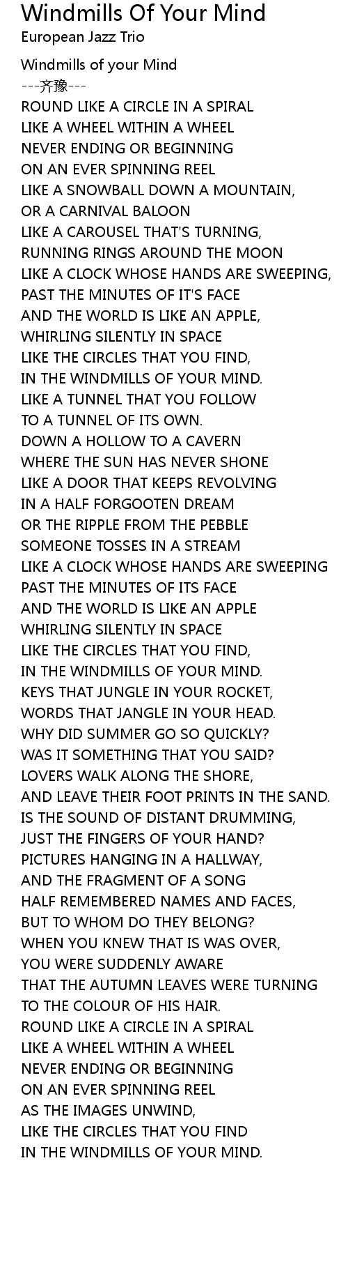 | IN THE WINDMILLS OF YOUR MIND. | |