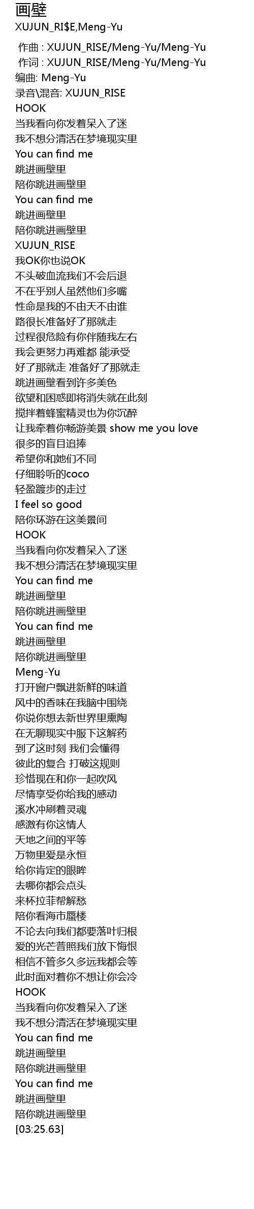 | [00:01.000] | 作词 : XUJUN_RISE/Meng-Yu/Meng-Yu |