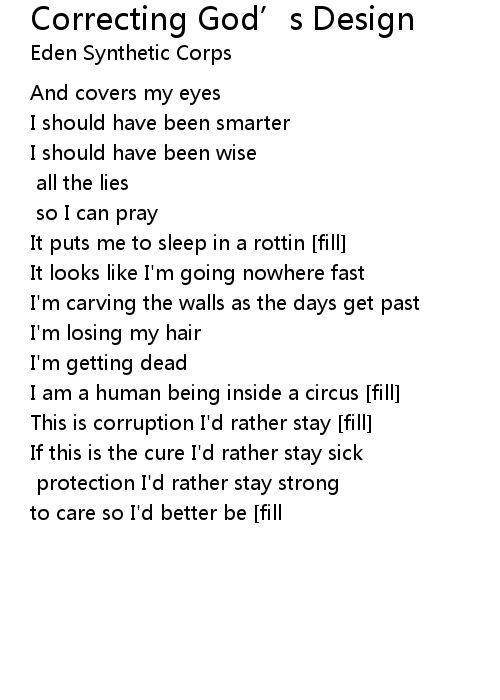| Song | Correcting God’s Design |