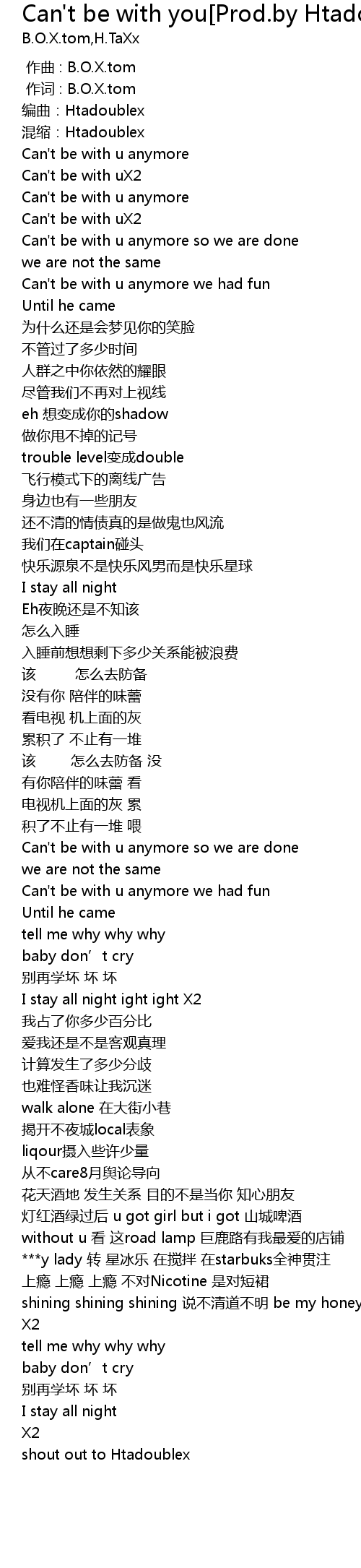 | [00:06.16] | 编曲:Htadoublex |