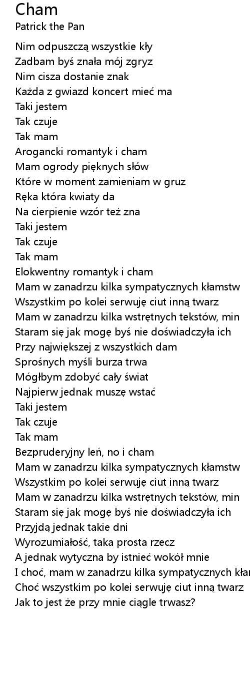 | [02:15.79] | Mam w zanadrzu kilka sympatycznych kłamstw |