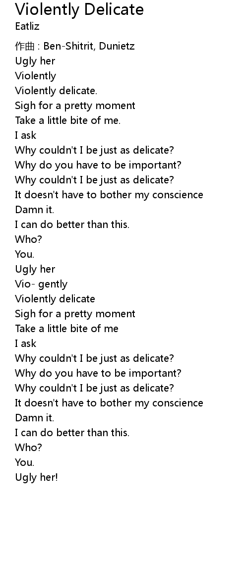| Song | Violently Delicate |