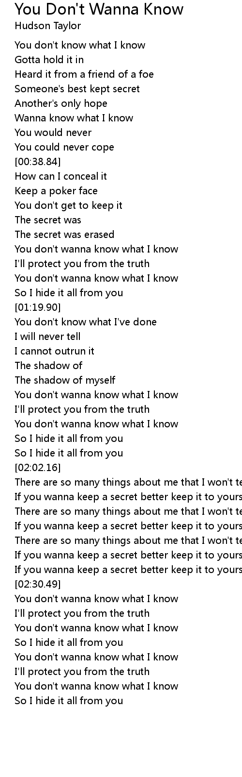 You don't wanna know what I know |