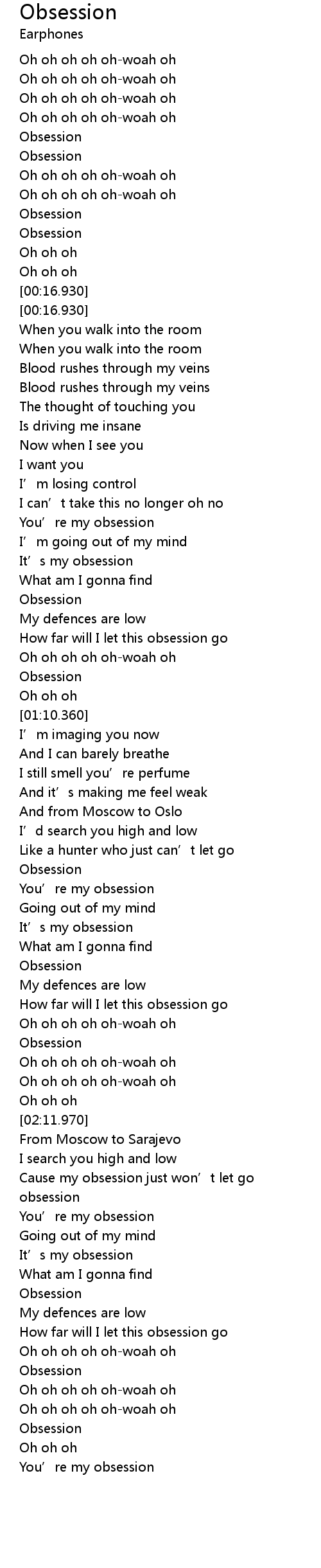 | [00:56.740] | Obsession |
