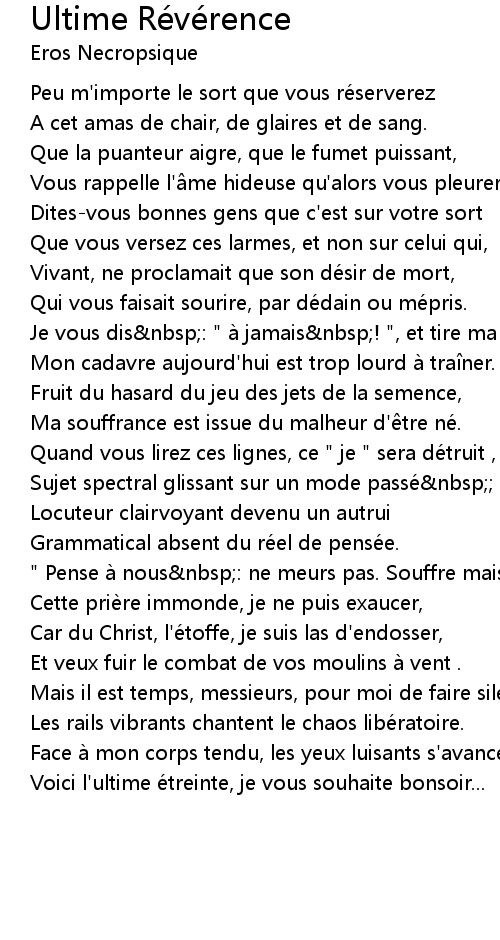 | Voici l'ultime étreinte, je vous souhaite bonsoir... |