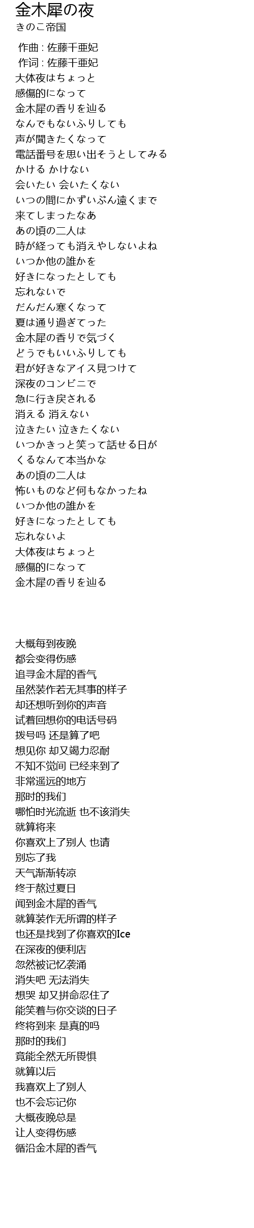 | Song | 金木犀の夜 |