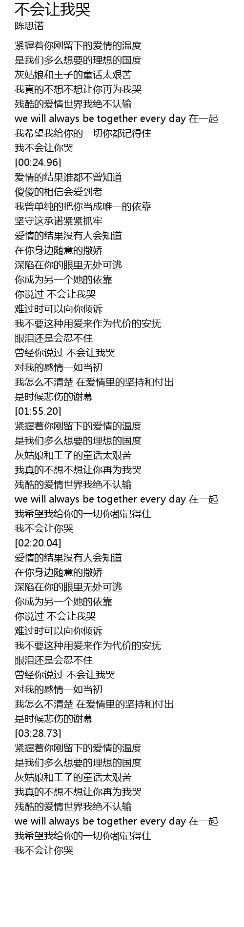 | [03:51.91] | wǒ bú huì ràng nǐ kū |
