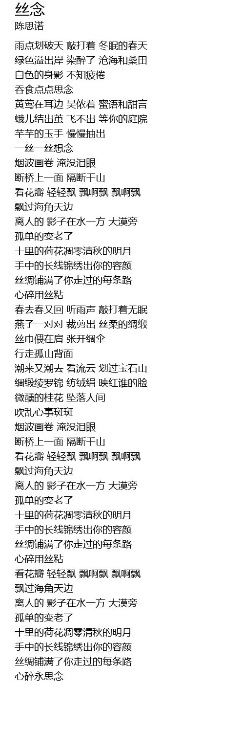 | [03:33.76] | xīn suì yǒng sī niàn |