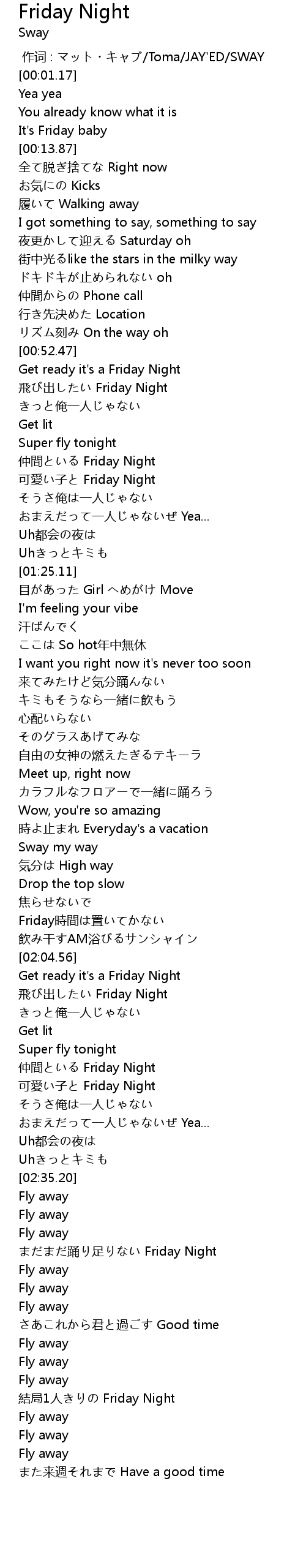 | [02:42.35] | まだまだ踊り足りない Friday Night |