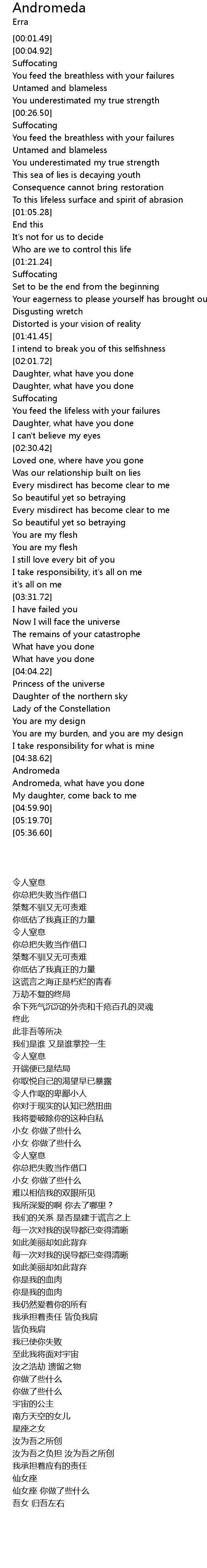 | [01:23.45] | Suffocating |