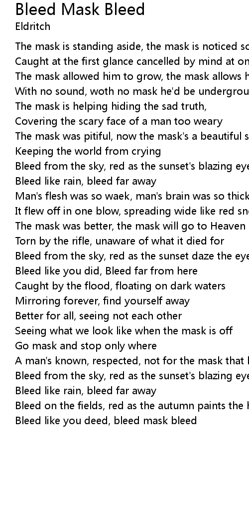 | The mask was pitiful, now the mask's a beautiful smile, pictured and lying | |