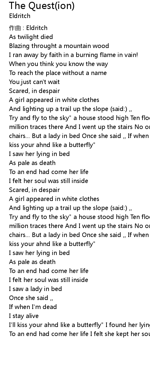 | I'll kiss your ahnd like a butterfly" I found her lying in bed As pale as death To an end had come her life I felt she kept her soul inside |