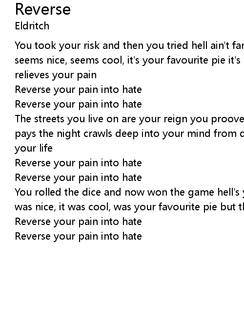 | You rolled the dice and now won the game hell's your prize, too late to cry it was nice, it was cool, was your favourite pie but the slice you ate had a stain | |