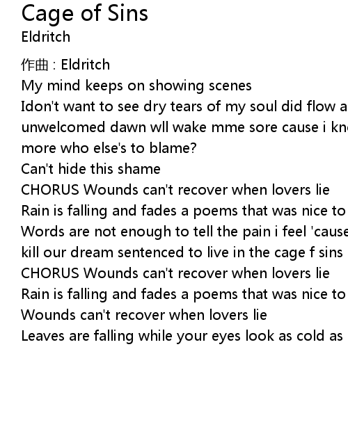 | Words are not enough to tell the pain i feel ' cause i know what you' ve done to kill our dream sentenced to live in the cage f sins | |
