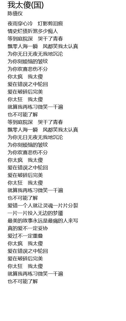 | Song | 我太傻(国) |