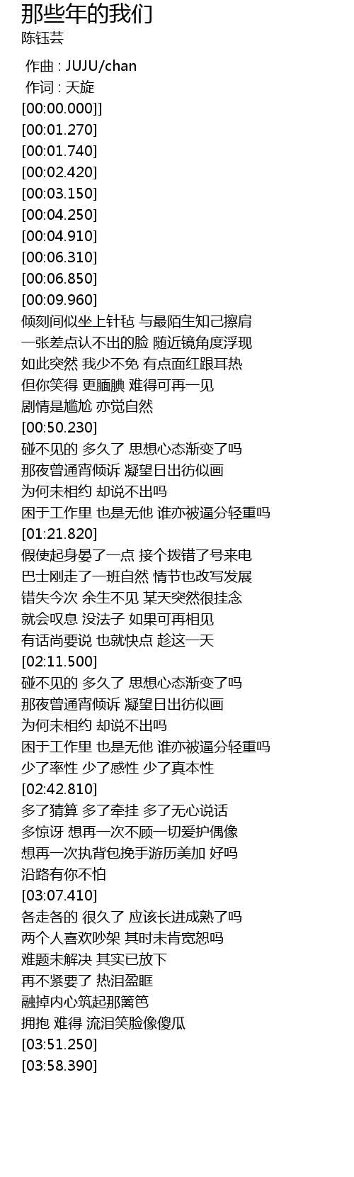 | [00:51.640] | 碰不见的 多久了 思想心态渐变了吗 |