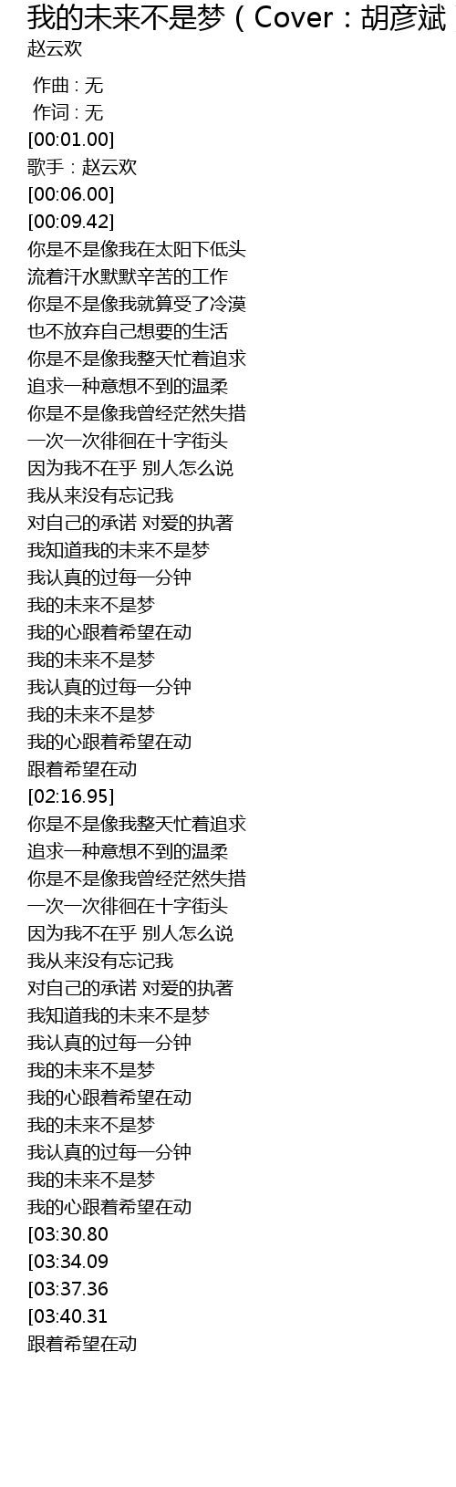 | [01:39.59] | 我的未来不是梦 |
