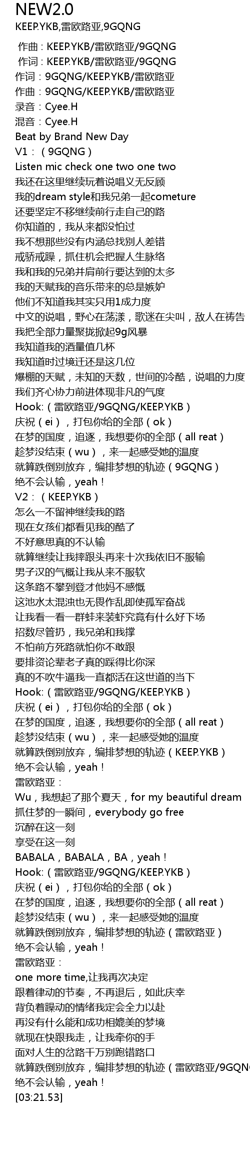 | [02:39.75] | Hook: léi ōu lù yà 9GQNG KEEP. YKB |